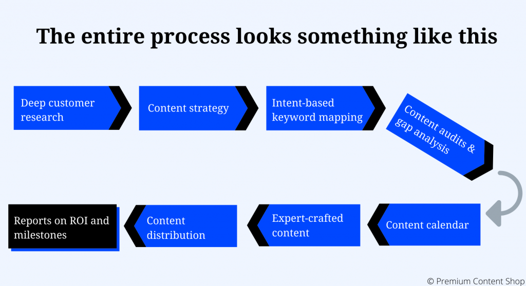 Essentially, I (and my team of expert freelance content creators) help you run your entire content marketing spectrum, and that means I: