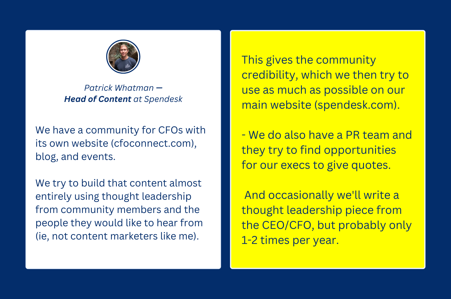 Spendesk’s Head of Content Patrick Whatman shared that they built an entirely different website just to produce content that almost only features advice from industry thought leaders.