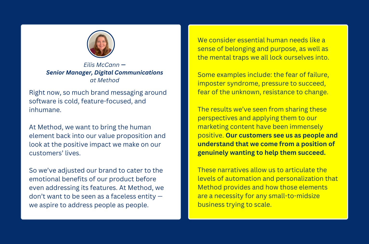 For Method’s senior manager of digital communications, Eilis McCann, and her team, the focus has been on creating narrative-driven content that speaks to the human side of their audience.