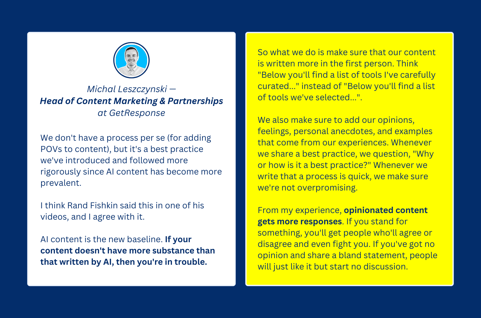 That’s one major point GetResponse’s Michal Leszczynski shared when I asked him about his experience adding POVs to content.