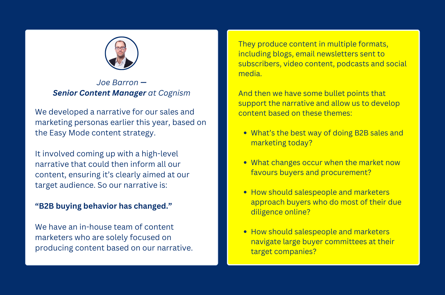 “Implementing this narrative and way of working has had a huge impact on Cognism and the marketing team’s success,” Joe added.