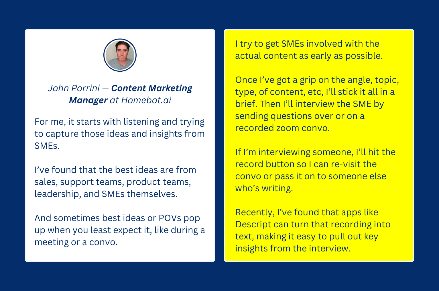 “Do you currently have a process to make sure your content reflects strong POVs at Homebot.ai? (E.g. maybe you’re inviting SMEs, etc)”
