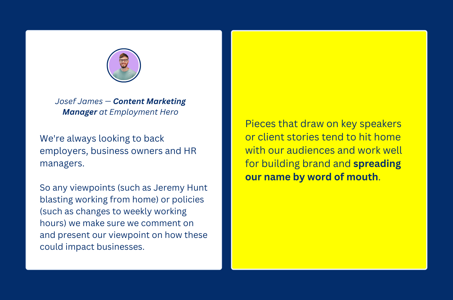 When I asked Josef James — Employment Hero’s Content Marketing Manager — to share his experience with POV-driven content, that’s almost exactly the results he shared.