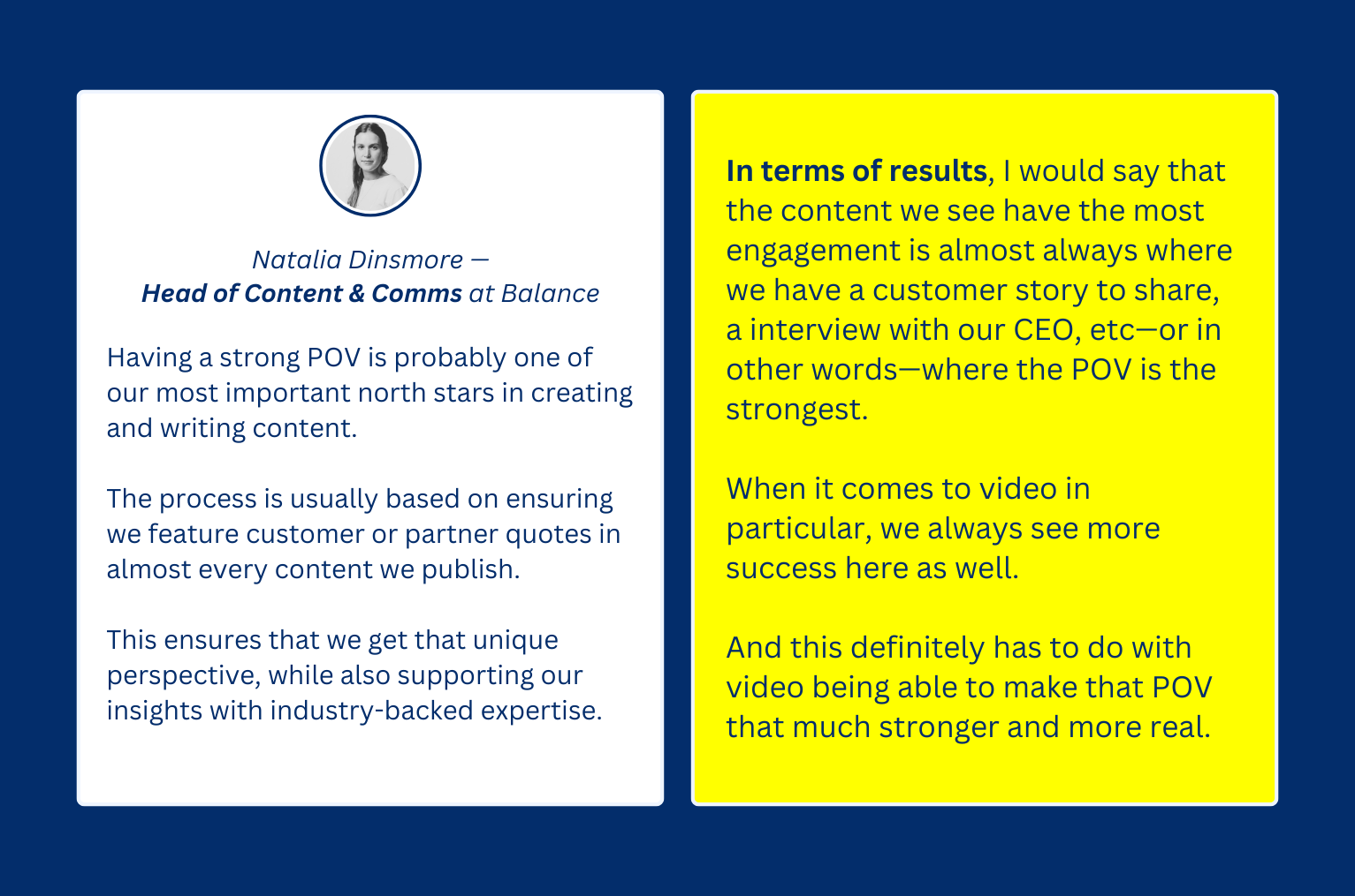 Still on the matter of engagement, Natalia Dinsmore, Head of Content & Comms Balance, says their POV-driven content often drives more engagement than other types of content.