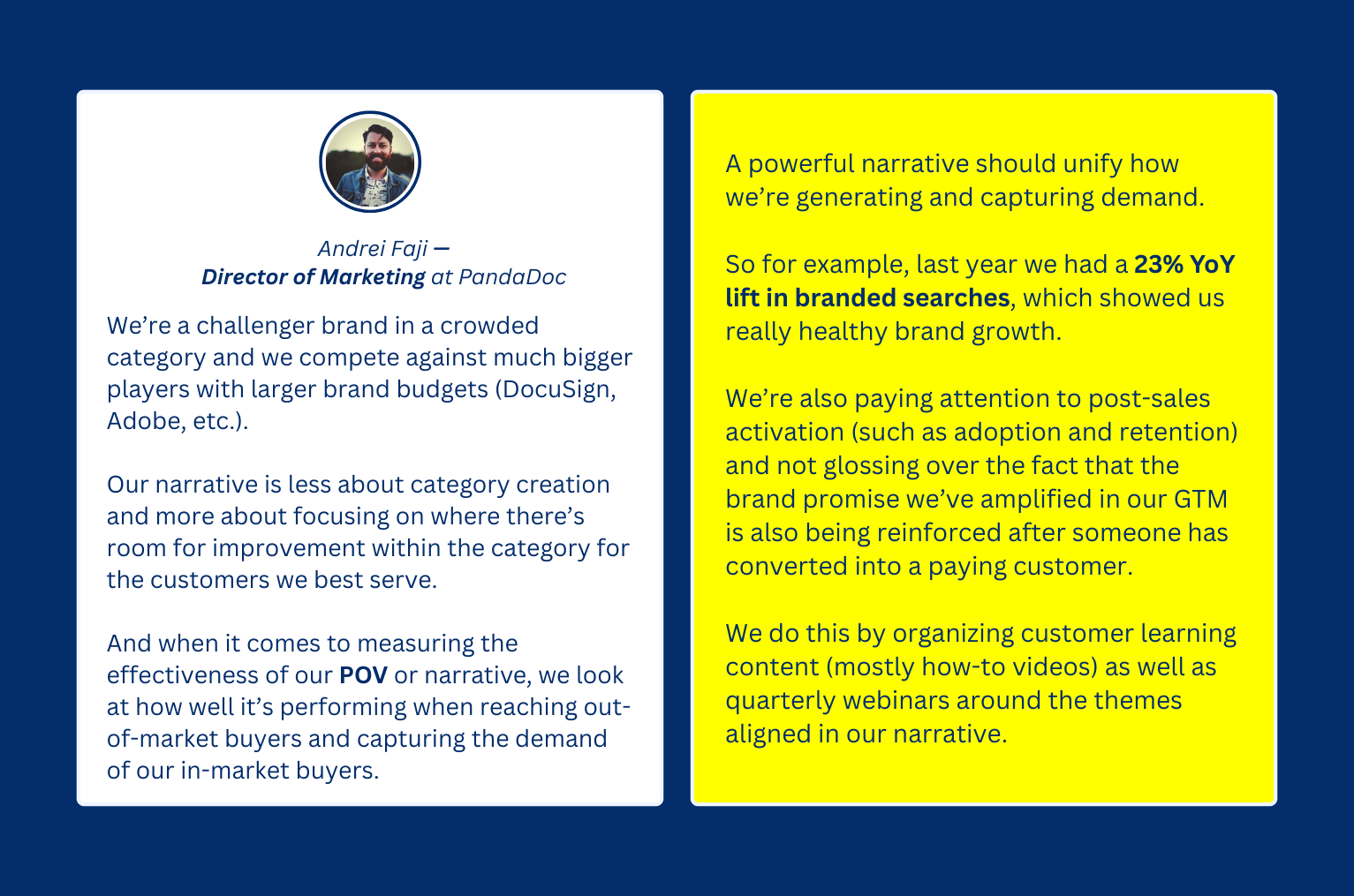 And that was Andrei Faji’s experience last year when he and his team focused their content on specific narratives (POVs) they’d set up for PandaDoc.
