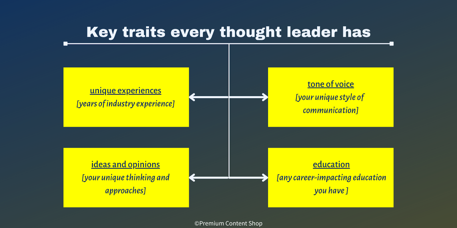 Essentially, to be a thought leader is to have thoughts, opinions, ideas (content) that place you in a leadership position.