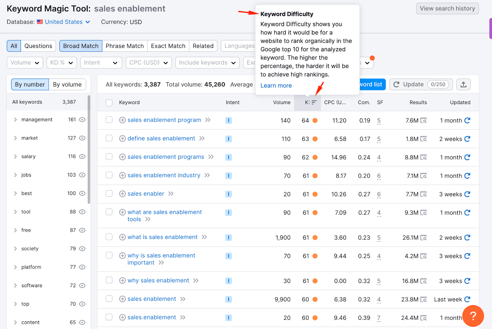 If I plug in ‘sales enablement,’ for instance, here’s what the results will look like: