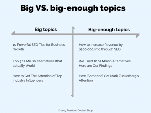 In my post about generating $150,000/mo through B2B content, I touched on the concept of big vs. big-enough topics…