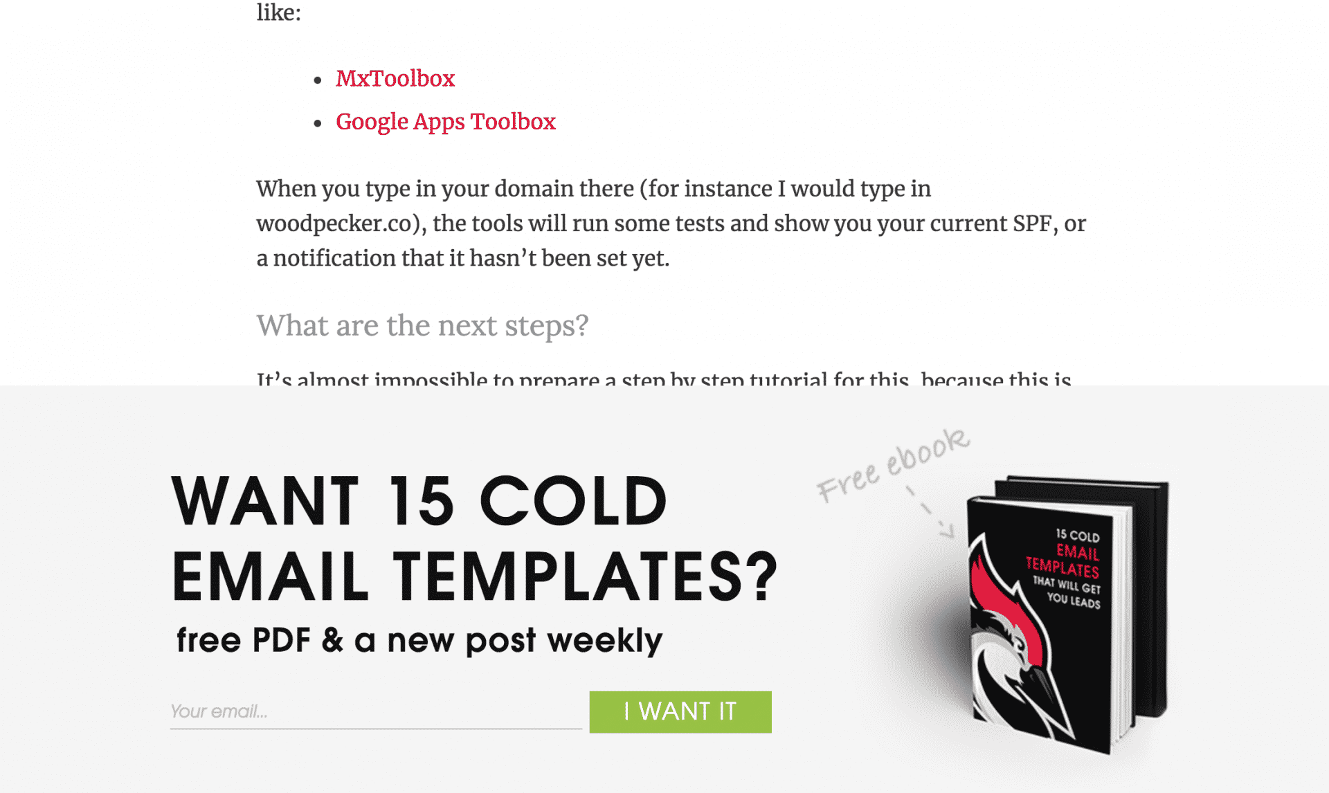 It’s a smart conversion optimization strategy designed to convert readers and take them to their next step in Woodpecker’s buying journey.
