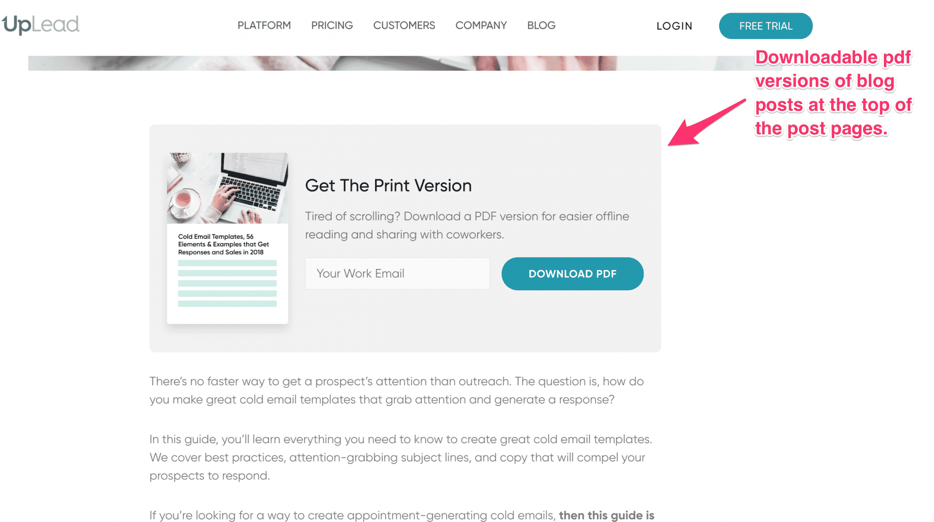 And here’s how they add downloadable PDF versions of blog posts at the top of their blog posts.