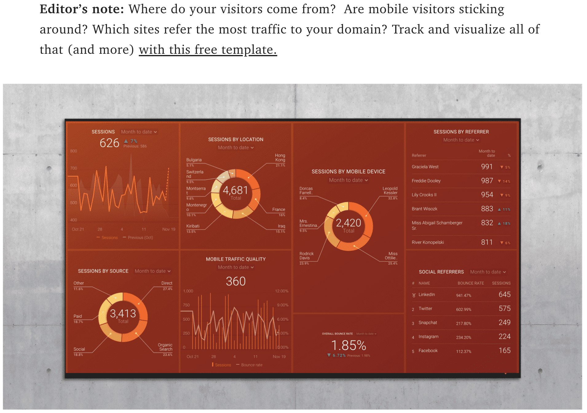 For example, in a post about Traffic Sources That Will Grow & Decline Next Year, they included an “editor’s note” that encourages readers to get a free web analytics template.